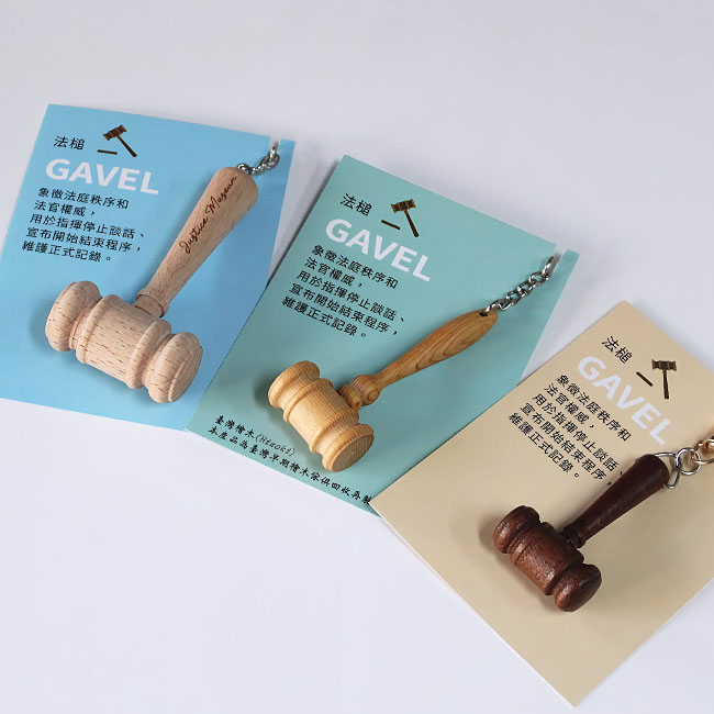 材質:紙(雷雕筆筒、司法小圖案貼紙、圓頂高塔便條紙)、原木、石墨、橡皮擦(法槌筆)
